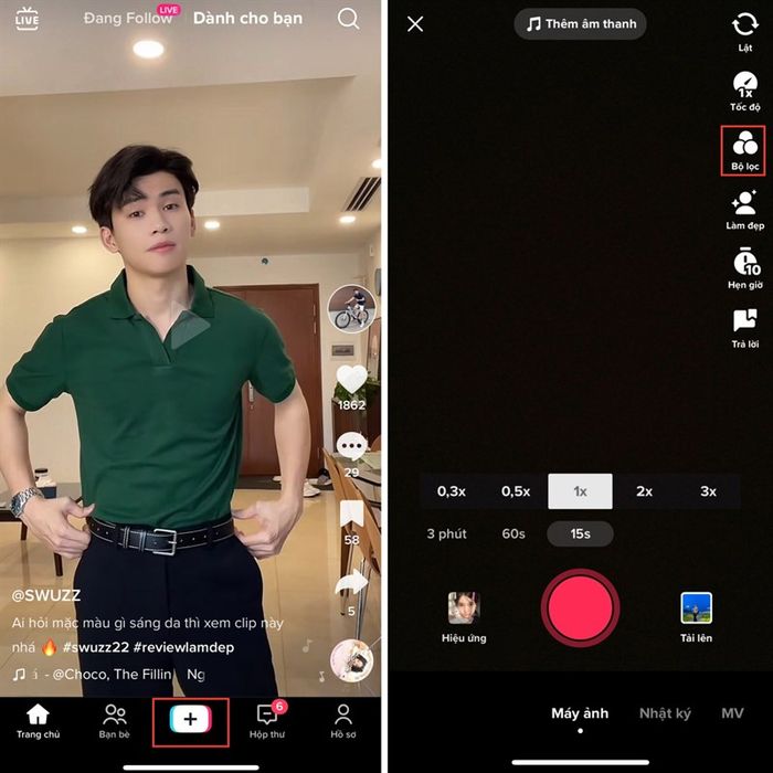 Bước 1: Khám phá tính năng Bộ lọc trên TikTok ngay từ ứng dụng, đặt nền móng cho sự sáng tạo của bạn.