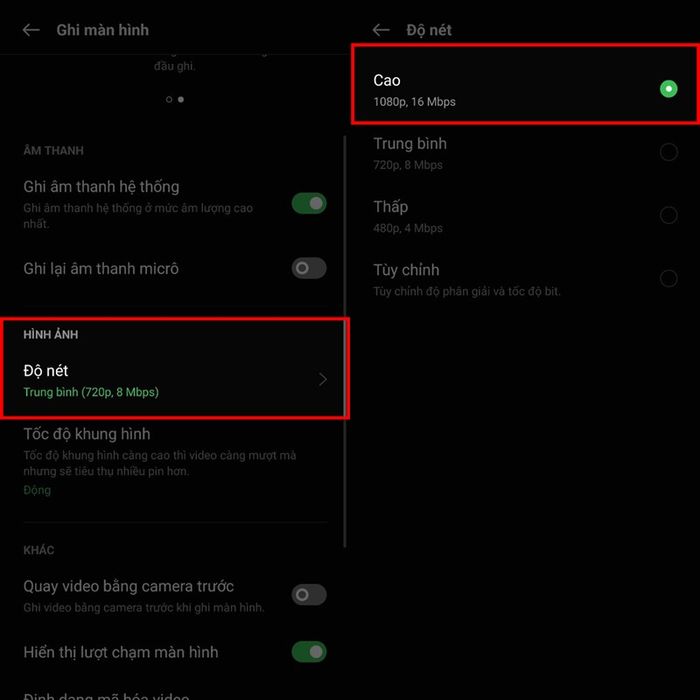 Bước 2: Tại mục Hình Ảnh, bấm vào Độ Nét và điều chỉnh lên cao nhất. Đồng thời, để video mượt mà hơn, bạn cũng có thể chỉnh Tốc Độ Khung Hình lên cao hơn.