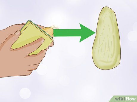 Chuẩn bị hạt trồng. Phơi khô hạt qua đêm ở nơi mát mẻ, tránh ánh nắng trực tiếp. Sử dụng dao sắc để tách hạt, nhớ không cắt quá sâu vào hạt. Tách hạt và lấy hạt bên trong, giống như hạt đậu lima.