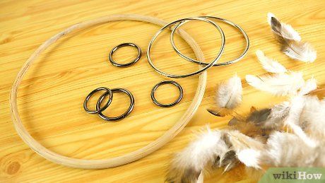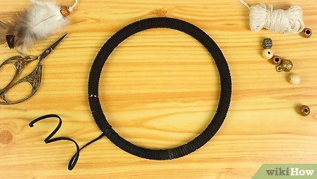 Chuẩn bị nguyên liệu cần thiết: Chọn một chiếc vòng kim loại hoặc gỗ với kích thước phù hợp. Nếu bạn mới bắt đầu, hãy chọn vòng có đường kính từ 13 đến 20 cm.- Bạn có thể mua vòng ở các cửa hàng đồ tạp hóa hoặc cửa hàng đan móc.
