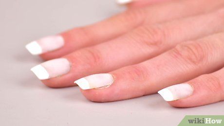 Cắt và giũa móng. Sử dụng dụng cụ cắt móng để cắt tỉa móng. Đừng cắt quá gần; hãy để lại một chút móng trắng ở đầu móng. Sử dụng dụng cụ giũa móng để giũa móng mềm mại và nhẵn mịn. Kéo giũa qua móng một cách nhẹ nhàng, không nên ấn quá mạnh. Đừng áp lực quá mạnh lên móng vì có thể làm yếu móng và gãy. Hãy di chuyển giũa theo hình cong của móng thay vì cắt góc. Không nên giũa quá gần, chỉ cần giũa nhẵn những điểm nhọn hoặc gồ ghề sau khi đã cắt móng.