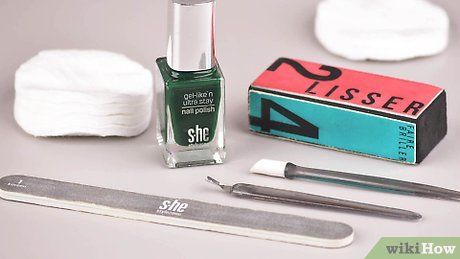 Chuẩn bị dụng cụ và phụ kiện. Để có bộ móng lung linh, bạn cần có đủ dụng cụ và phụ kiện phù hợp. Ban đầu có thể bạn sẽ phải bỏ ra một khoản tiền nhất định, nhưng sau này khi bạn muốn sơn móng, bạn đã có đủ dụng cụ. Hãy mua các sản phẩm sau: