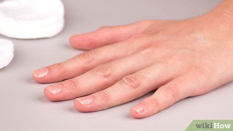 Tẩy sơn móng cũ. Sử dụng dung dịch tẩy sơn móng tay cùng bông gòn hoặc tăm bông để loại bỏ lớp sơn cũ. Một số loại dung dịch tẩy sơn móng tay có thể làm khô da và móng. Bạn có thể chọn loại không gây khô da và móng, nhưng đừng lo lắng, trừ khi bạn có phản ứng dị ứng nghiêm trọng.