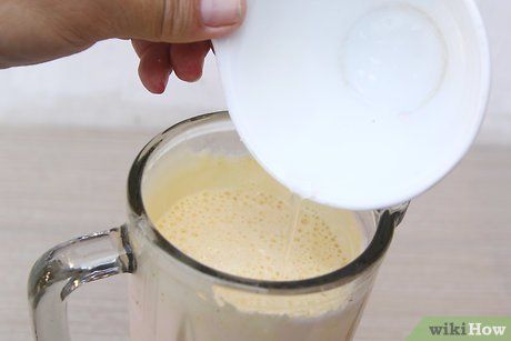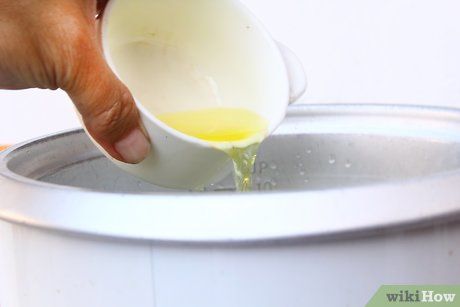 Thêm dung dịch kiềm vào dầu. Đổ từ từ dung dịch vào nồi nấu chậm và tránh tiếp xúc trực tiếp với da. Sử dụng máy xay cầm tay để trộn đều và kiểm tra độ đặc khi xay.