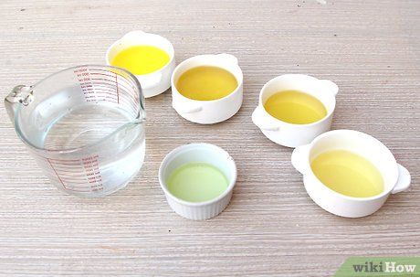 Chuẩn bị nguyên liệu cần thiết. Để tạo ra xà phòng nước tốt, bạn cần kết hợp đúng lượng dầu và kali hydroxit. Dưới đây là công thức và nguyên liệu bạn cần chuẩn bị: