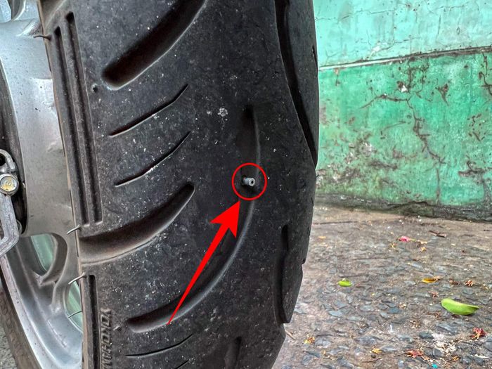 Đây chính là vật đã làm lỗ trên bánh xe của mình. Vì lỗ lớn và rỗng bên trong, dù có bơm nhiều lần đi nữa, bánh xe vẫn không lên được tí nào, không giữ được hơi.Bước 1: Gỡ vật nhọn ra khỏi bánh xe