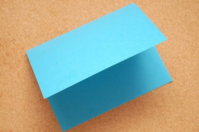 Bước 1: Chọn kích thước cho thiệp và sử dụng kéo để cắt tấm bìa cứng thành hình chữ nhật hoặc vuông tùy theo sở thích. Gấp đôi tấm bìa để tạo ra tấm thiệp.