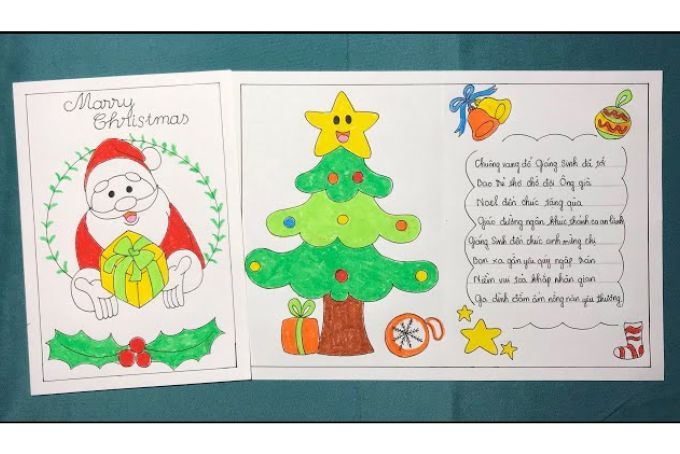 Để vẽ thiệp Giáng sinh rất đơn giản, không cần cầu kì. Bạn có thể vẽ trang trí bên ngoài hoặc bên trong tấm thiệp với các họa tiết liên quan đến Noel như ông già Noel, cây thông, xe tuần lộc,...