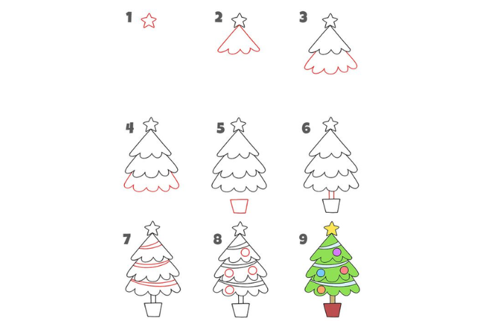 Hướng dẫn vẽ thiệp Giáng sinh với hình cây thông Noel