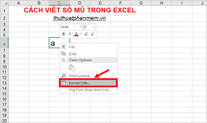 Bước 1: Nhập a vào ô trong Excel, sau đó chuột phải và chọn Format Cells.