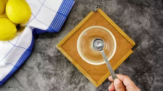 Ép nửa quả chanh vào một chiếc bát.
