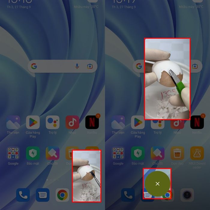 Bước 4: Bây giờ, khi bạn đang xem video và thoát ra, điện thoại sẽ hiển thị cửa sổ nổi để xem video trực tiếp. Bạn có thể phóng to hoặc thu nhỏ cửa sổ này bằng cách chụm hoặc duỗi hai ngón tay. Bạn cũng có thể giữ và di chuyển cửa sổ để xem video ở vị trí phù hợp. Cuối cùng, khi đã xem xong, giữ cửa sổ và kéo xuống để đóng.