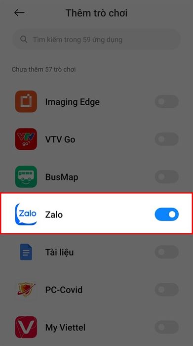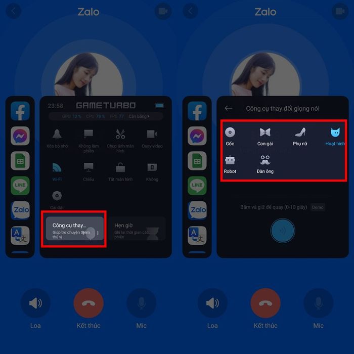 Bước 2: Mở công tắc để đổi giọng nói trên ứng dụng Zalo trong Game Turbo