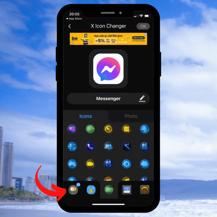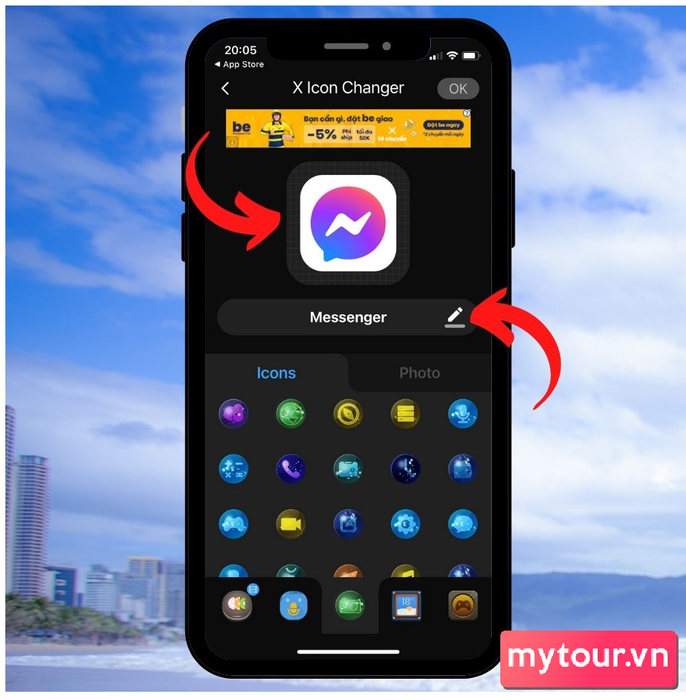 Ví dụ, Mytour sẽ chọn biểu tượng ghi âm từ giao diện biểu tượng và đổi tên ứng dụng thành 'trình ghi âm'.Bước 5:Sau khi đã chọn tên mới và biểu tượng mới để ngụy trang ứng dụng, bạn nhấn vào OK ở góc phải phía trên để lưu lại phiên bản ứng dụng mới tạo ra.Bước 6: Tiếp theo, bạn cần thêm vỏ bọc này vào màn hình chính. Bước này sẽ có sự khác biệt khi thực hiện trên iOS và Android.