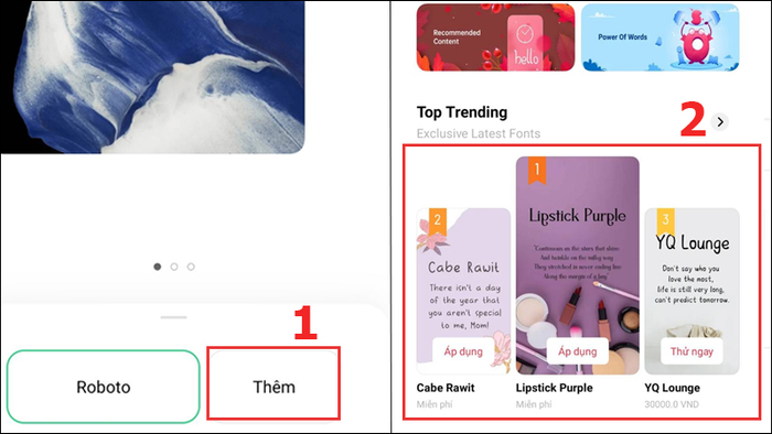 - Bước 2: Chọn Thêm > Lựa chọn font chữ phản ánh cá tính và sở thích của bạn.