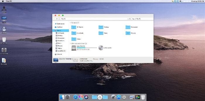 Giao diện macOS Catalina (Lite) sẽ đưa thanh Taskbar của bạn lên trên và điều chỉnh một số tính năng của ứng dụng. Bên cạnh đó, giao diện còn thay đổi một số tính năng từ con trỏ chuột và hệ thống, giúp máy tính của bạn trở nên giống với macOS hơn. Bạn có thể tải nhanh ứng dụng từ liên kết dưới đây.
