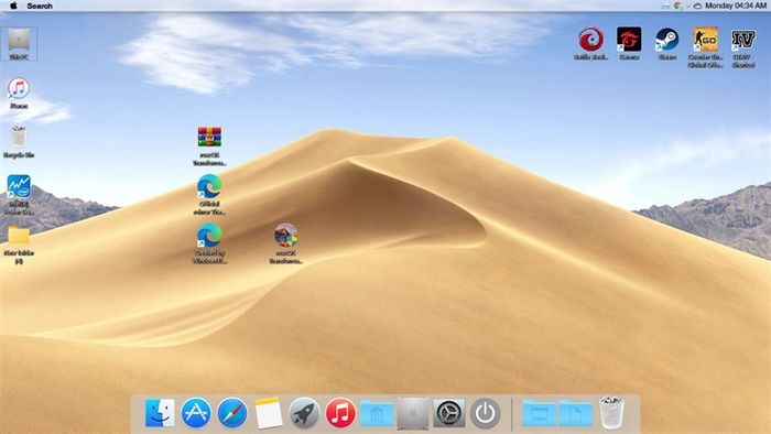 Khác biệt với những giao diện mà tôi đã giới thiệu ở trên, giao diện macOS Transformation Pack thay đổi gần như toàn bộ giao diện trên Windows 11, với sự xuất hiện của thanh Dock ở phía trên. Bên cạnh đó, giao diện còn giúp hệ thống thay đổi về con trỏ chuột, hình nền, phông chữ, âm thanh, Launchpad và nhiều tính năng khác. Ngoài ra, giao diện còn mang đến máy tính của bạn những ứng dụng mặc định của MacOS như trình duyệt Safari,...