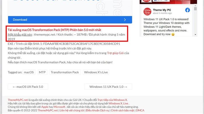 Tương tự như macOS Transformation Pack, giao diện macOS UX Pack cũng có những tính năng và thay đổi tương tự nhưng nhẹ nhàng hơn rất nhiều. Vì vậy, nó có thể tương thích với đa số máy tính và không ảnh hưởng nhiều đến hiệu suất của máy. Bạn có thể tải về nhanh chóng thông qua liên kết bên dưới.