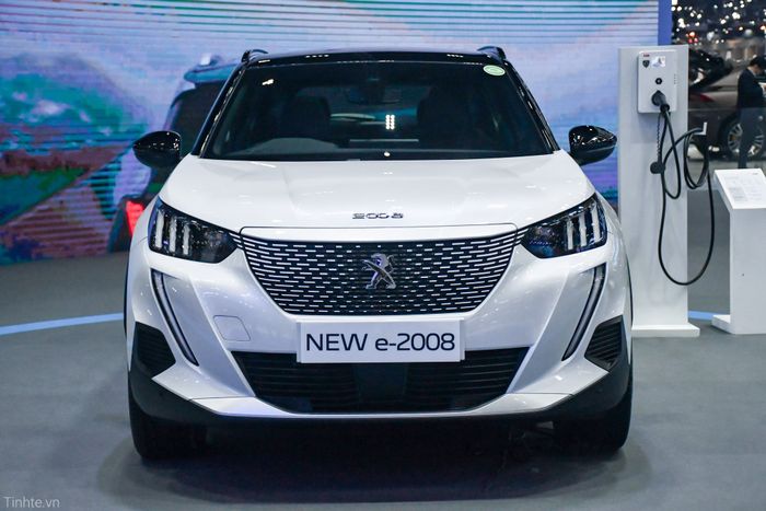 Ở phía trước, cụm lưới kim loại nhỏ là điểm nhấn của Peugeot e-2008, là một đặc điểm thiết kế đặc trưng của Peugeot cho các mẫu xe mới của họ. Thông thường, các hãng xe làm xe điện sẽ làm giảm lưới tản nhiệt để tạo nên vẻ hiện đại, nhưng Peugeot không làm như vậy. Điểm đặc biệt khác ở phía trước của e-2008 là hệ thống đèn LED ban ngày, tạo hình giống như nanh sư tử.