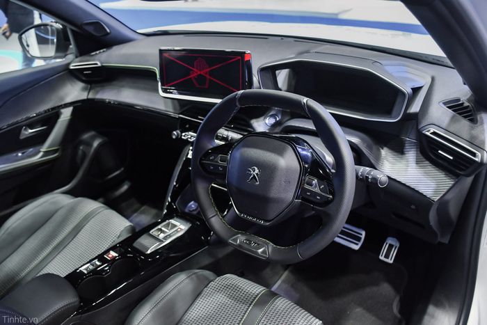 Khoang lái của Peugeot e-2008 được thiết kế theo phong cách tương lai, chính như lời mô tả của hãng xe Pháp. Mọi chi tiết như vô lăng, bảng đồng hồ tốc độ,... đều được cắt xẻ, tạo góc cạnh, tạo cảm giác như đang ở trong cabin của một chiếc phi thuyền. Các nút điều khiển trên xe cũng là điểm mà tôi cảm nhận được ấn tượng về thiết kế và sắp xếp của chúng.