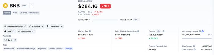 Giá token BNB đã giảm hơn 7% trong vòng 24 giờ gần đây do những thông tin tiêu cực như đã đề cập.