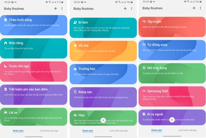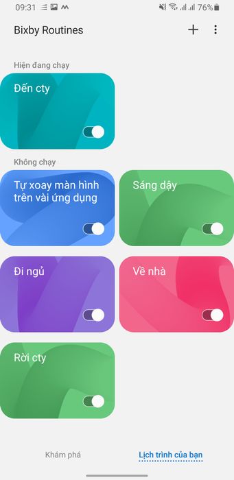 Trong giao diện chính của Bixby Routines, bạn sẽ thấy hai tab quan trọng: Khám phá và Lịch trình cá nhân.