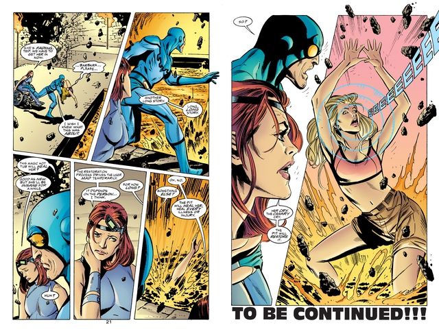 Black Canary bị thương nặng trong trận chiến và Oracle yêu cầu Blue Beetle đưa cô xuống Lazarus Pit. Điều này tình cờ khôi phục lại siêu năng lực Canary Cry của Black Canary và cũng khôi phục khả năng sinh con của cô.
