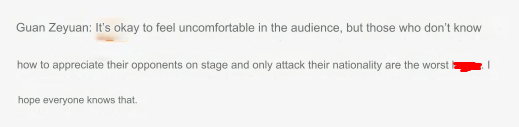 Nhiều người hâm mộ LPL đã chỉ trích Quản Trạch Nguyên vì cho rằng anh quá phấn khích khi một đội từ LCK vô địch, dù là BLV của khu vực LPLSau đó, Quản Trạch Nguyên đã phản ứng, khiến cho nhiều người hâm mộ LPL suy ngẫm. “Việc cảm thấy không thoải mái sau khi thất bại là điều bình thường. Tuy nhiên, người không biết tôn trọng đối thủ mới là điều tồi tệ nhất. Hy vọng mọi người nhận ra điều này” - BLV Quản Trạch Nguyên chia sẻ.