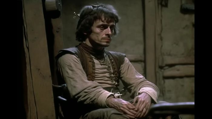 Nhân vật Wirt trong Diablo I được AI biểu diễn theo phong cách hình ảnh thập niên 80. Chúng ta có thể thấy bàn tay của nhân vật vẫn... không giống bàn tay thực sự - Ảnh: YouTube.