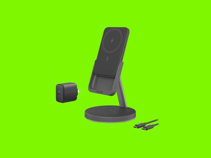 Cuối cùng, nhưng không kém phần quan trọng, là một giá đỡ sạc không dây từ tính khác: Anker 623 (80 đô la). Không có bộ pin sạc nào được liên quan; nó chỉ là một trụ tròn gọn nhẹ cung cấp một điểm sạc từ tính và một chỗ sạc không dây thoải mái khác dưới đáy.