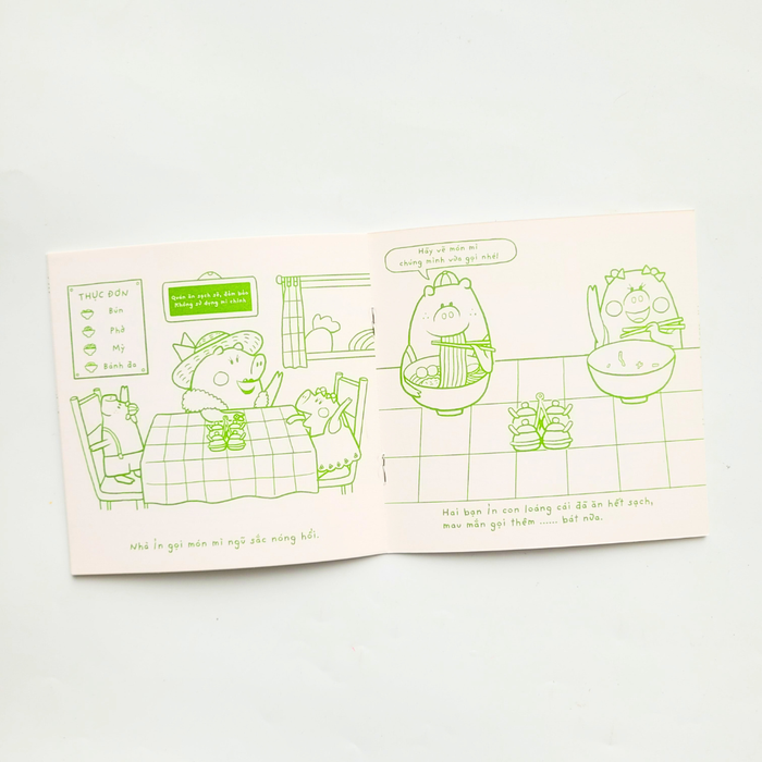 Mỗi cuốn sách đều khuyến khích trẻ phát huy trí tưởng tượng để sáng tạo câu chuyện thú vị mà không lo sợ sai. Trẻ được mời tô màu từ trang bìa đến các trang bên trong, vẽ thêm chi tiết nhỏ để hoàn thiện các bức minh họa.