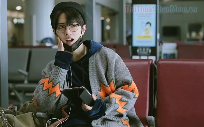 Bức tranh di động tại sân bay với vẻ dễ thương của Tiêu Chiến