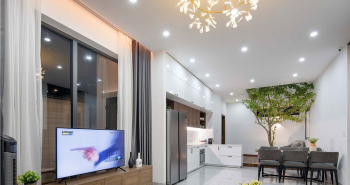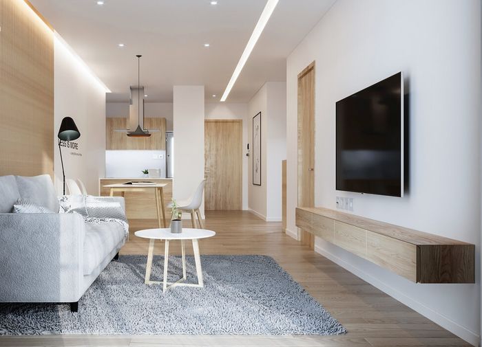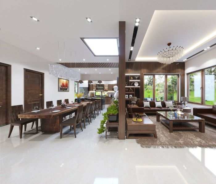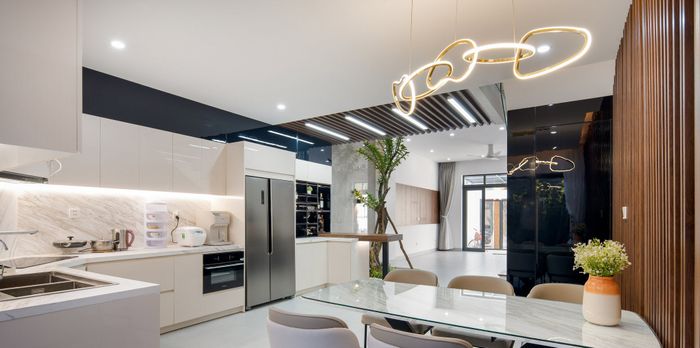 Kết hợp hoàn hảo với không gian liền bếp với mẫu trần thạch cao phẳng
