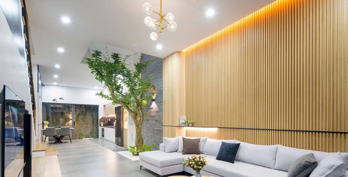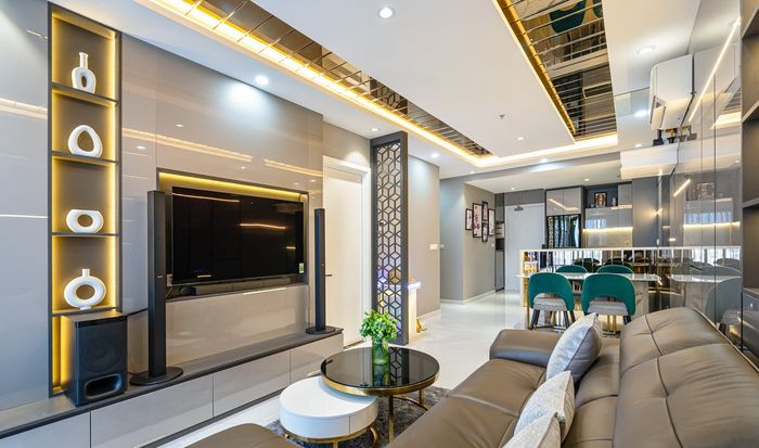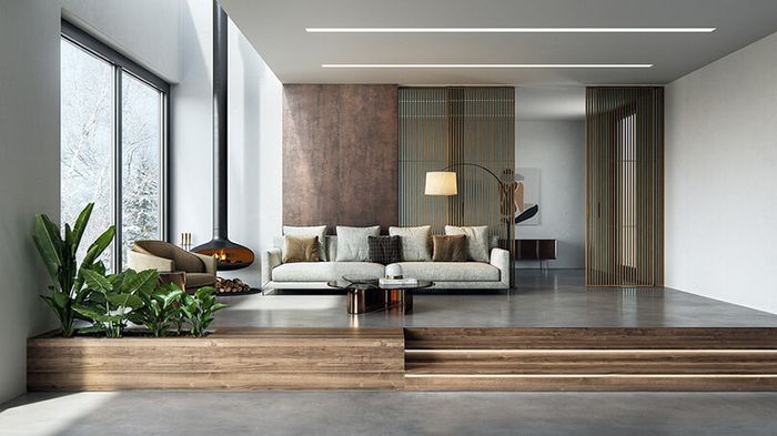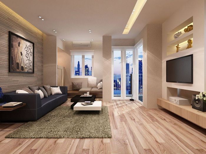 Trải nghiệm không gian ấm cúng với mẫu trần thạch cao phẳng không giật cấp cho phòng khách