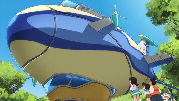 Bên cạnh vương quốc Paradapia tuyệt vời lần đầu tiên xuất hiện, Zeppelin - chiếc tàu bay thời gian cũng là điểm nổi bật trong bộ phim. Đây là một chiếc tàu bay có khả năng di chuyển qua lại giữa thời gian và không gian. Nhóm Doraemon chỉ cần đặt thời gian và địa điểm, bắn viên đạn uốn cong thời gian, bay vào cổng thời gian và đến nơi đích. Đối với người hâm mộ của Mèo Ú, 'bảo bối bá đạo' này thực sự làm họ say mê khi chứng kiến điều độc đáo chưa từng thấy.