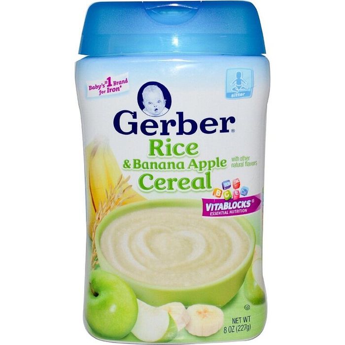 - Bột ăn dặm Gerber vị gạo, táo và chuối 227g: 120.000 VNĐ.