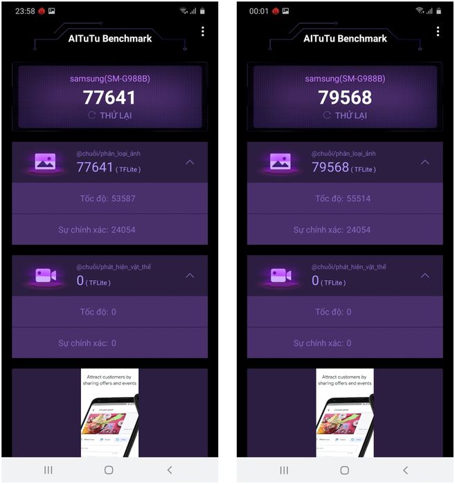 Điểm AITUTUCác bộ xử lý di động hiện nay không chỉ tập trung vào sức mạnh xử lý mà còn tích hợp nhiều tính năng AI bên trong. Galaxy S20 trở đi, việc sử dụng AITUTU đã trở thành một phần quan trọng trong quá trình kiểm tra hiệu năng. Việc này giúp đánh giá khả năng trí tuệ nhân tạo của máy. Điểm trên 79 ngàn của Galaxy S20 là khá tốt, tuy nhiên cần nhiều thiết bị hơn để so sánh rõ ràng hơn về hiệu năng AI.