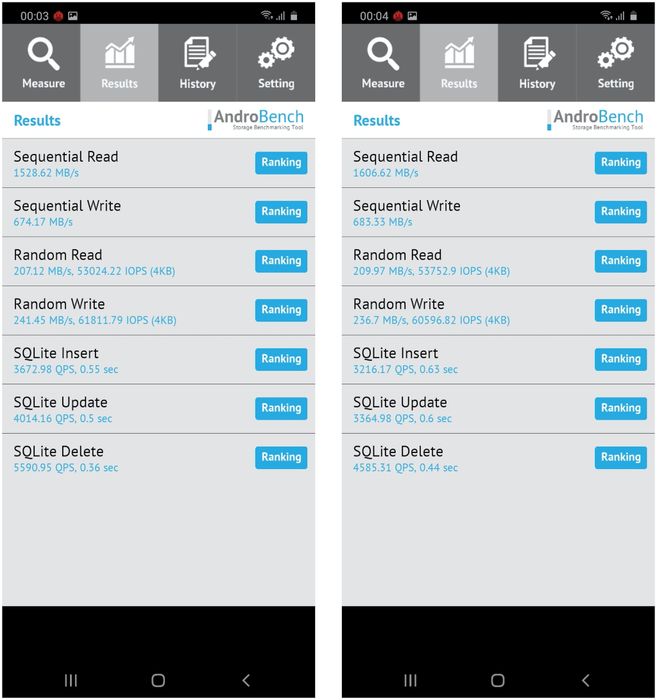 Samsung quyết định tiếp tục sử dụng bộ nhớ UFS 3.0 thay vì nhiều tin đồn trước đó cho rằng S20 sẽ là chiếc điện thoại đầu tiên được trang bị bộ nhớ UFS 3.1. Tốc độ đọc và ghi vẫn giữ nguyên như Note10, đạt khoảng ~1500MB/s đọc - ~700MB/s ghi, là một trong những bộ nhớ có hiệu suất tốt nhất mà tôi từng kiểm tra.