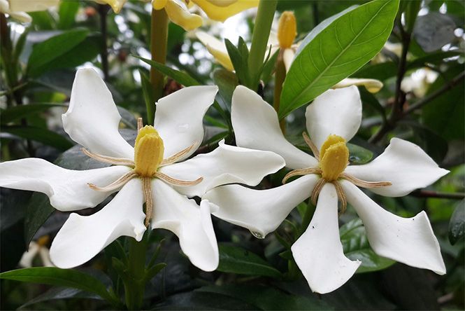 Dành Dành khoe sắc với hình ảnh hoa nở nhiều bông, tạo nên vẻ đẹp tuyệt vời