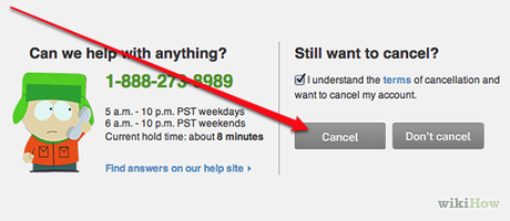 Đọc các điều khoản và điều kiện. Phần này dài khoảng 8 trang, cố gắng thuyết phục bạn đăng ký thay vì hủy. Điều khoản liên quan đến việc hủy chủ yếu nói về việc bạn sẽ phải trả phí cho dịch vụ đã sử dụng. Hãy đọc kỹ trước khi tiếp tục.