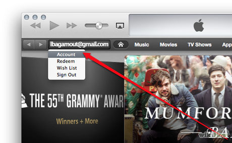 Vào cửa hàng iTunes. Từ trang chủ, bấm vào Apple ID (tên người dùng) của bạn và chọn Tài khoản (Account) trong danh sách. Đăng nhập bằng Apple ID và mật khẩu của bạn.