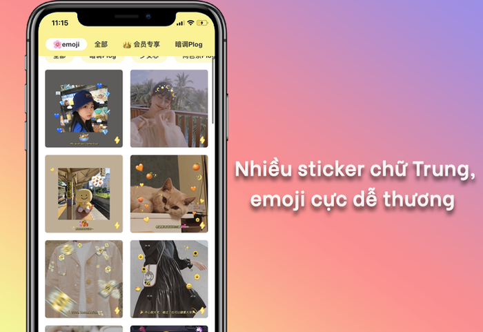 1. Cung cấp nhiều sticker chữ Trung Quốc và emoji dễ thương, đang là xu hướng hot trong giới trẻ