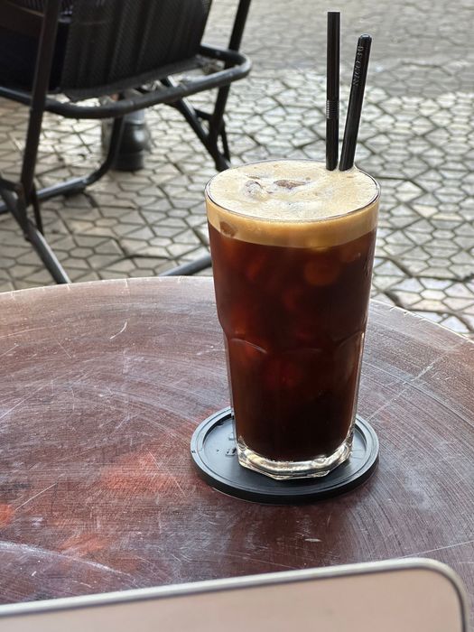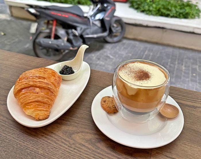 Đang thưởng thức Americano, đồng thời viết bài cho anh em nè. Còn cái cốc ở trên và chiếc bánh croissant, phải đến Quận 1 mới tìm được đấy nhé.