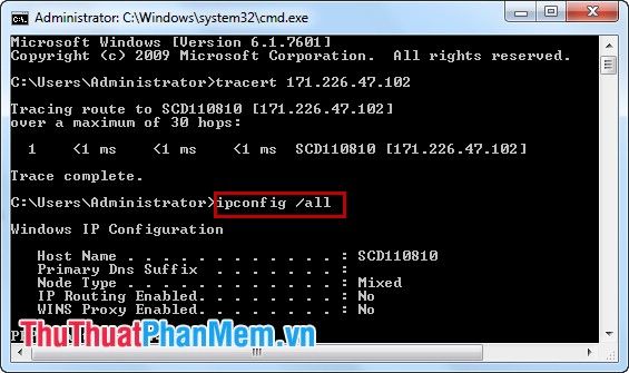 2. Lệnh Tracert - Dùng để theo dõi đường truyền từ máy tính của bạn đến máy tính đích.