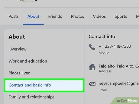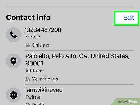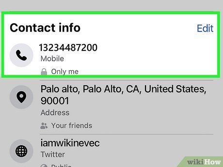 Nhấn vào Contact Info (Thông tin liên hệ). Tùy chọn này nằm phía dưới danh sách thông tin hồ sơ ở đầu trang. Mục 'Mobile Phone' (Điện thoại di động) sẽ được liệt kê bên dưới.