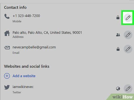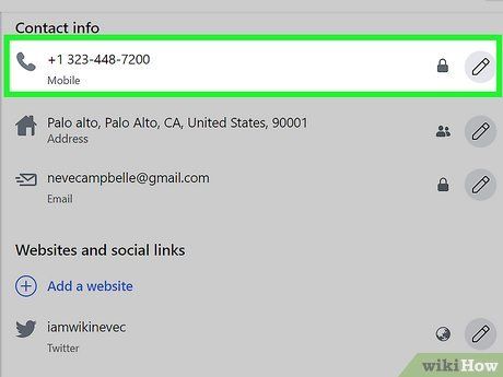 Nhấp vào Chỉnh sửa thông tin cơ bản và liên hệ của bạn. Tùy chọn này sẽ xuất hiện khi bạn di chuyển con trỏ chuột lên trên số điện thoại.