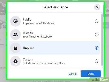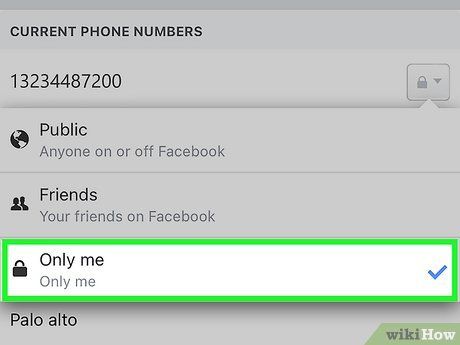 Nhấn vào Chỉ mình tôi (Chỉ mình tôi). Tùy chọn này nằm gần cuối trình đơn bật lên ở đây. Sau khi chọn chế độ Chỉ mình tôi, bạn vẫn có thể tiếp tục sử dụng Facebook Messenger đồng thời số điện thoại sẽ được ẩn.