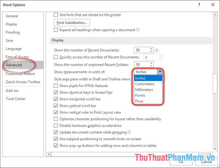 Đơn vị đo mặc định của Word thường là inch, nhưng nếu bạn không ưa, hãy chuyển sang đơn vị khác.