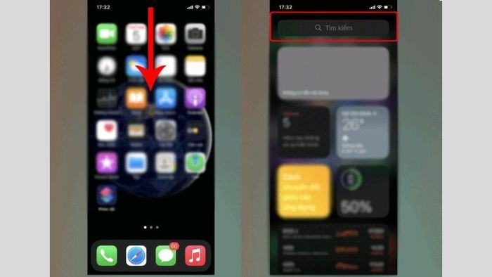 Vuốt xuống từ giữa màn hình để hiện thanh tìm kiếm