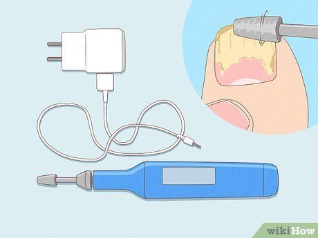 Làm mỏng móng quá dày với một máy mài móng điện. Máy mài móng điện có một đầu mài quay mài bề mặt của móng chân của bạn để chúng mỏng hơn và dễ cắt hơn. Hãy ngâm hoặc làm mềm móng của bạn trước khi mài để chúng dễ dàng mài. Bật máy mài lên và nhẹ nhàng chải đầu mài quay qua móng chân của bạn. Áp dụng áp lực nhẹ khi bạn sử dụng máy mài để loại bỏ tới một nửa độ dày của móng chân.